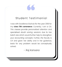 I was with Eduhub for the year 2018 for my class 11th commerce. Currently, I am a CA. This classes provide personalized attention and specialised doubt solving sessions due to low batch size which would further help to strengthen your accounting concepts.